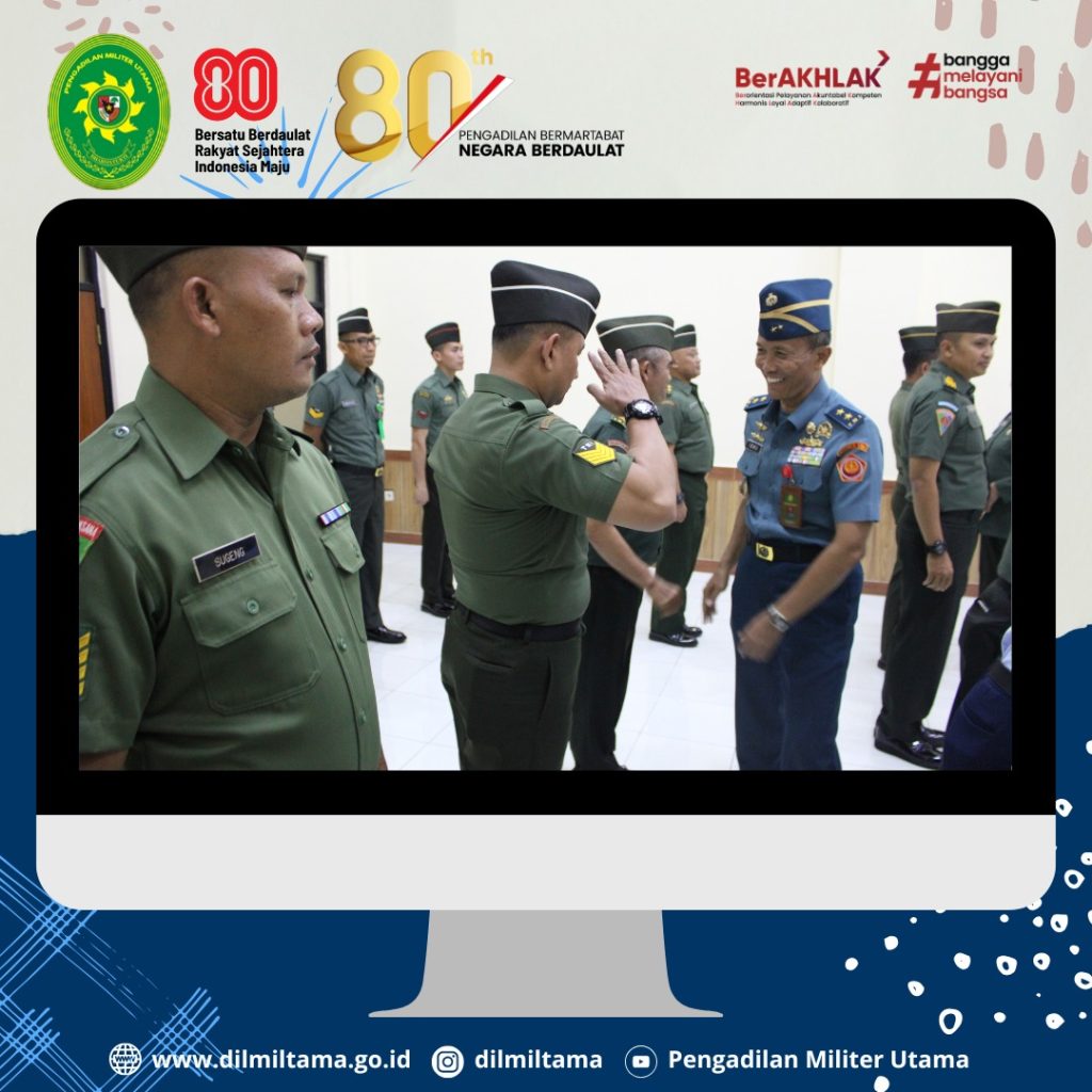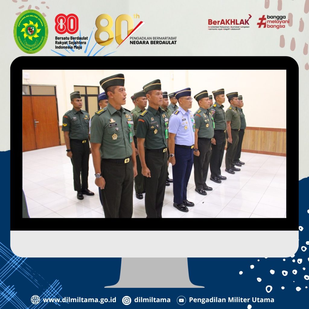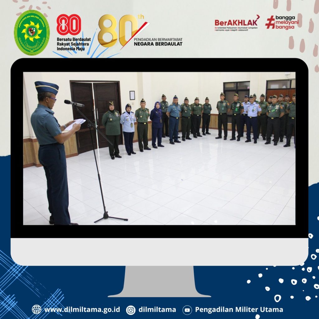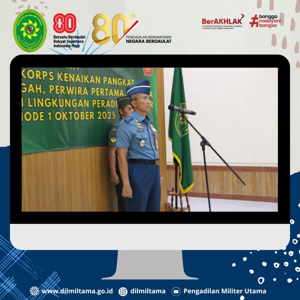 Bertempat di Ruang Sidang Pengadilan Militer Utama, Kepala Pengadilan Militer Utama Laksda TNI Ismu Edy Aryanto, S.H., M.H. memimpin Acara Laporan Korps Kenaikan Pangkat Perwira, Bintara dan Tamtama Periode 1 Oktober 2025 di Lingkungan Peradilan Militer.