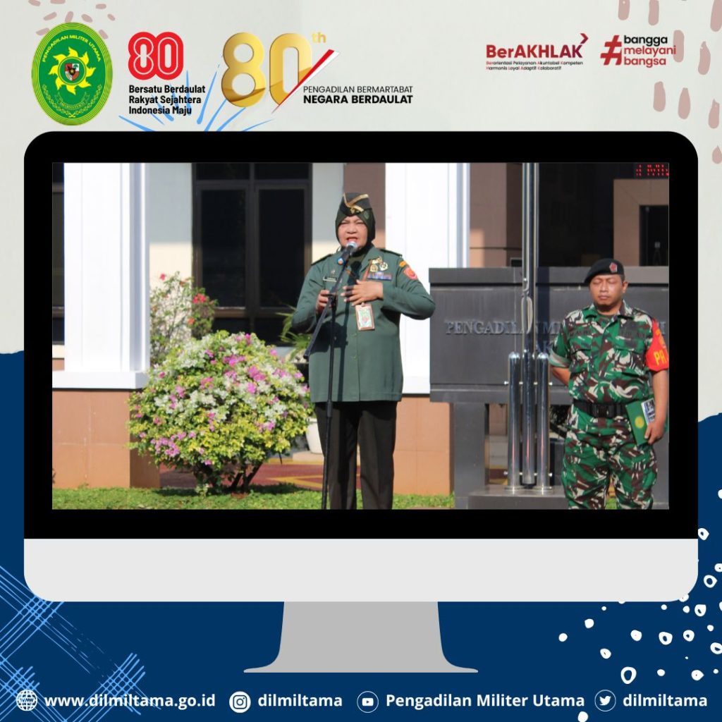 Wakil Kepala Pengadilan Militer Utama Brigjen TNI Faridah Faisal, S.H., M.H. memimpin Kegiatan Apel Gabungan di Lingkungan Peradilan Militer se-Jakarta yang diikuti oleh seluruh personel Dilmiltama, Dilmilti II Jakarta dan Dilmil II-08 Jakarta.
