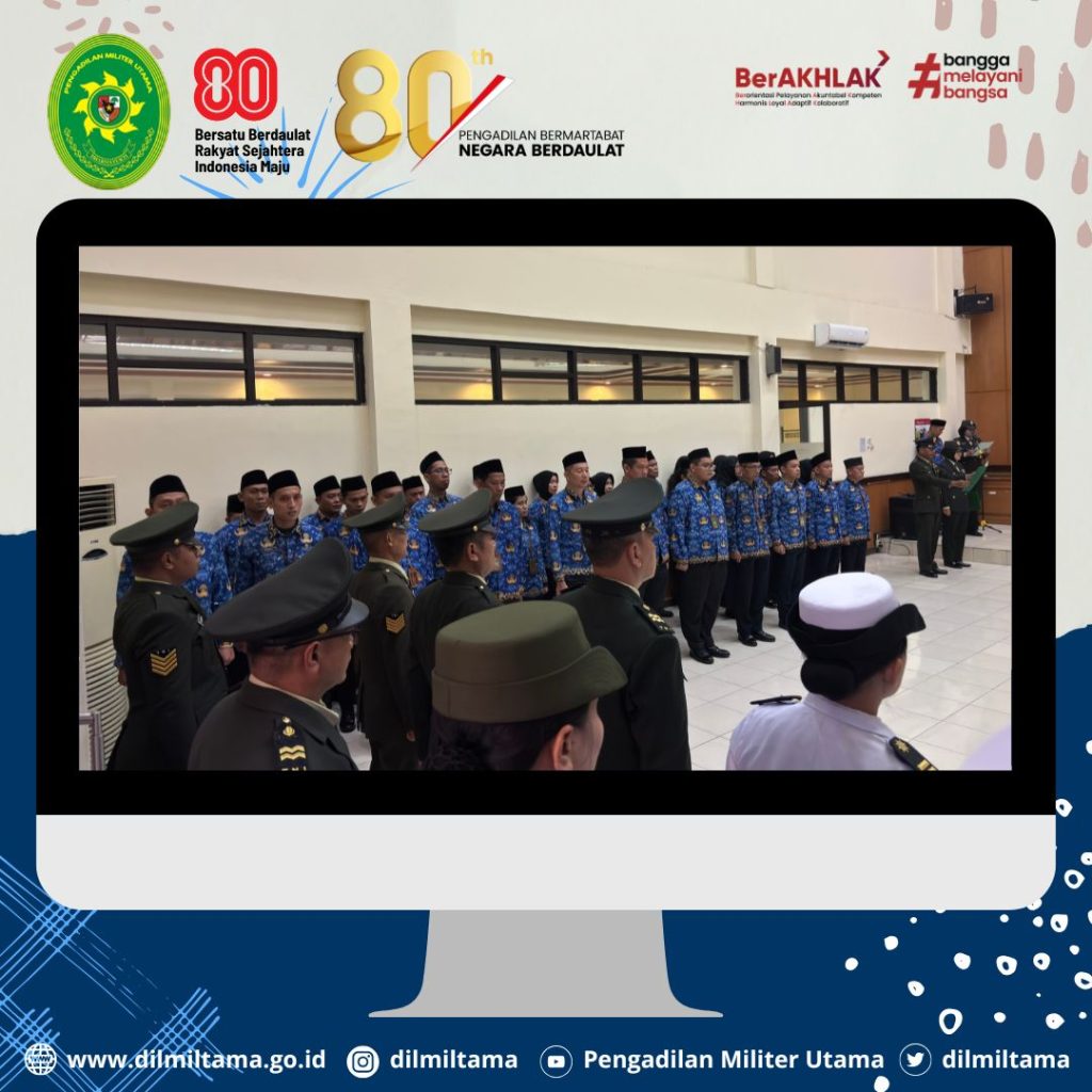 Bertempat di Ruang Sidang Pengadilan Militer II-08 Jakarta seluruh personel Dilmiltama, Dilmilti II Jakarta dan Dilmil II-08 Jakarta mengikuti Upacara Peringatan Hari Sumpah Pemuda yang mengusung Tema “PEMUDA PEMUDI BERGERAK, INDONESIA BERSATU”. Bertindak sebagai Inspektur Upacara Kadilmilti II Jakarta Laksma TNI Tuty Kiptiani. S.H., M.H.