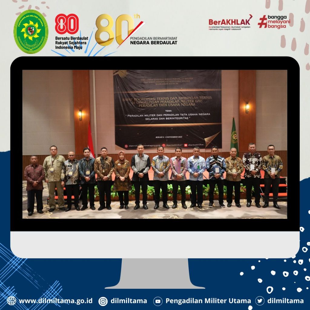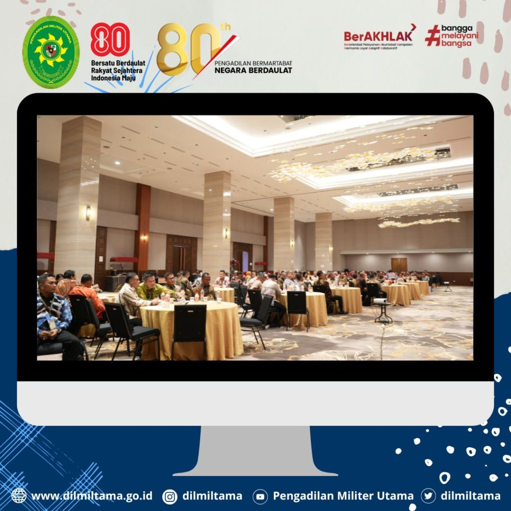 Kepala Pengadilan Militer Utama Laksda TNI Ismu Edy Aryanto, S.H., M.H. beserta Sekretaris Pengadilan Militer Utama Ibu Nuratiah, S.H., M.H. menghadiri Kegiatan Rapat Koordinasi Teknis di Lingkungan Peradilan Militer dan Peradilan Tata Usaha Negara yang diselenggarakan oleh Direktorat Jenderal Badan Peradilan Militer dan Peradilan Tata Usaha Negara Mahkamah Agung RI.