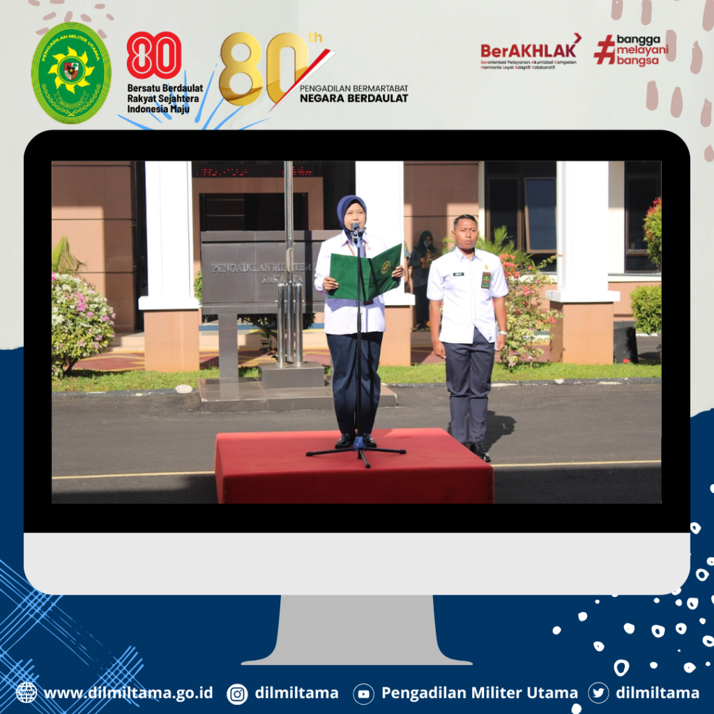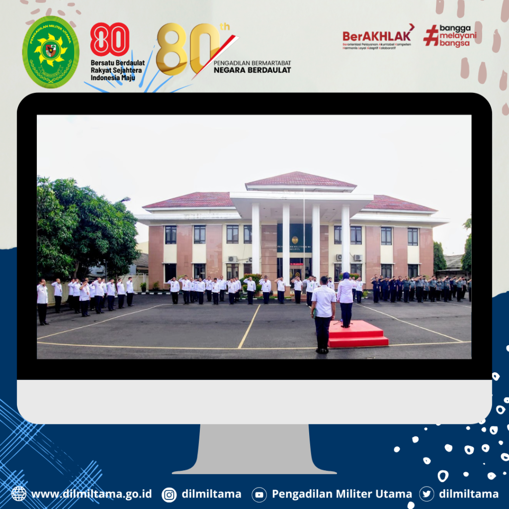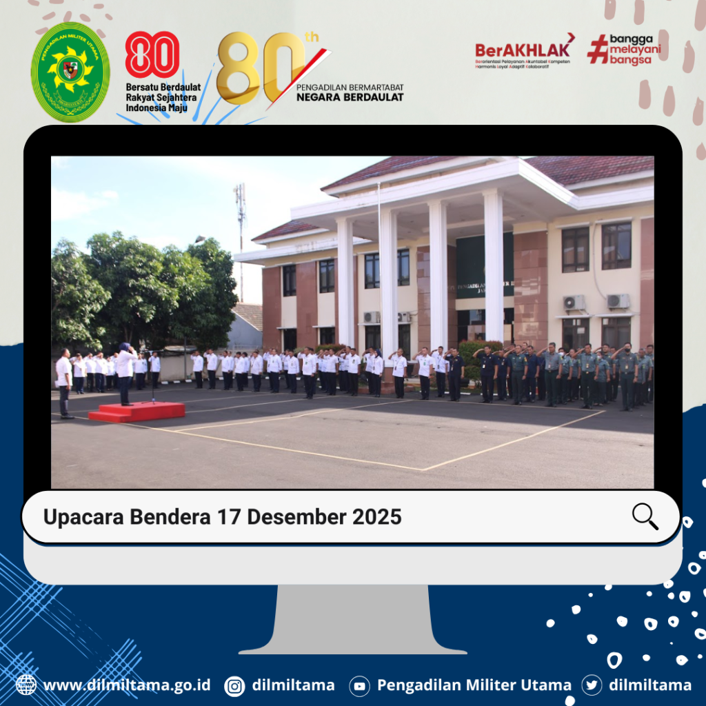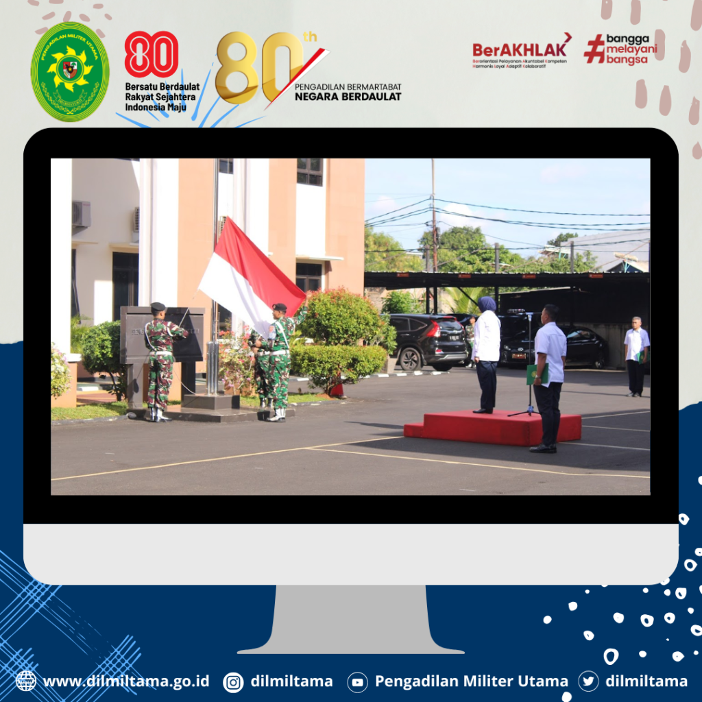 Seluruh personel Dilmiltama, Dilmilti II Jakarta dan Dilmil II-08 Jakarta melaksanakan Kegiatan Upacara Bendera 17-an di Lingkungan Peradilan Militer se-Jakarta. Bertindak sebagai Inspektur Upacara Hakim Militer Utama Marsma TNI Evi Zuraida, S.H., M.H.
