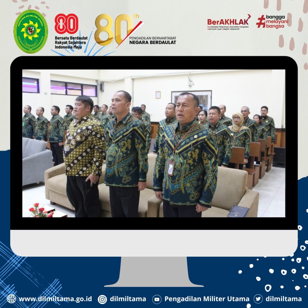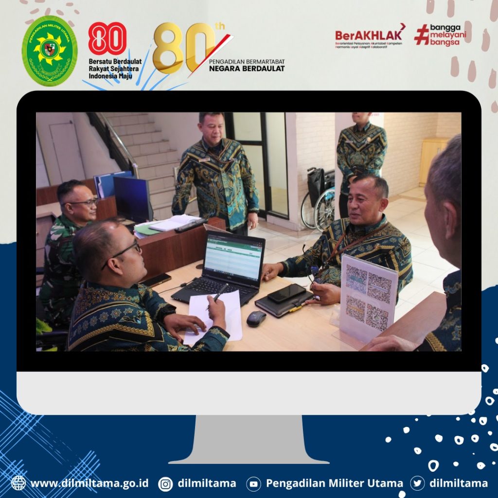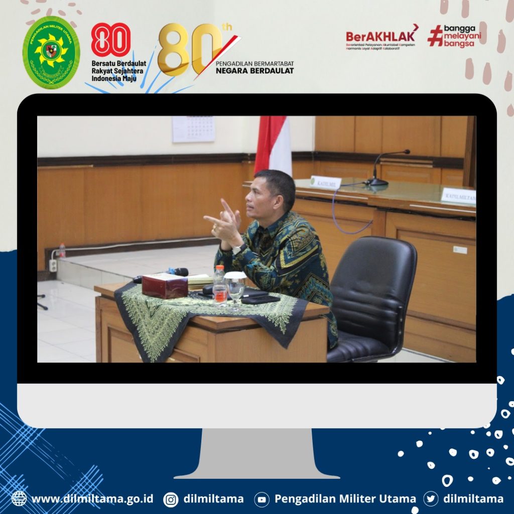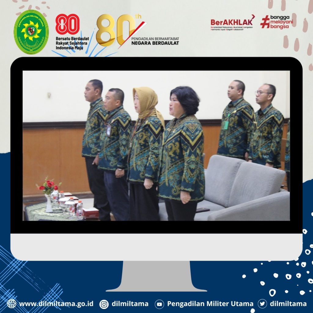 Kepala Pengadilan Militer Utama Laksda TNI Ismu Edy Aryanto, S.H., M.H. didampingi oleh Hakim Militer Utama Dilmiltama Brigjen TNI Dr. Esron Sinambela, S.S., S.H., M.H. dan Sekretaris Dilmiltama Nuratiah, S.H., M.H. melaksanakan Kegiatan Pembinaan dan Pengawasan pada Pengadilan Militer II-08 Jakarta.