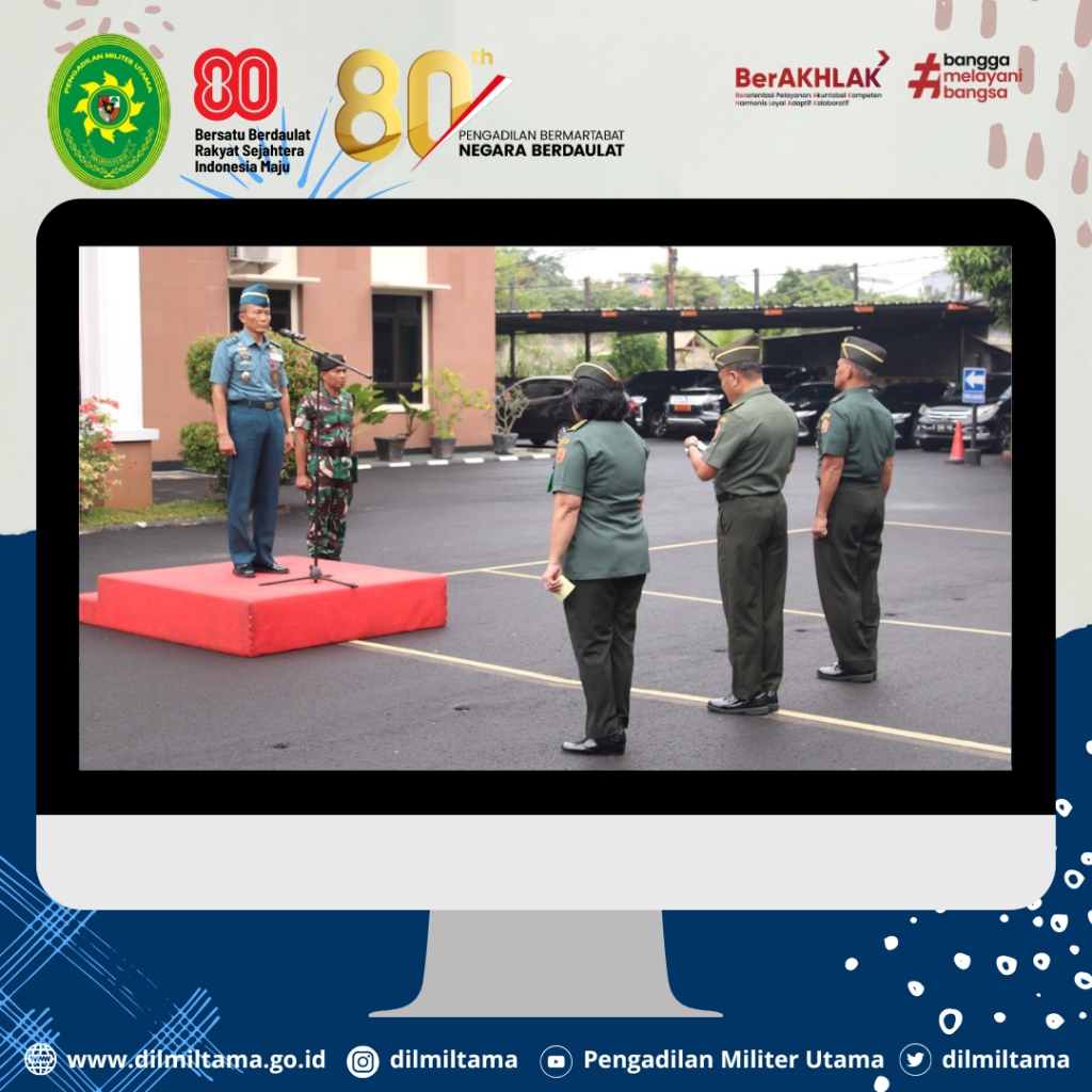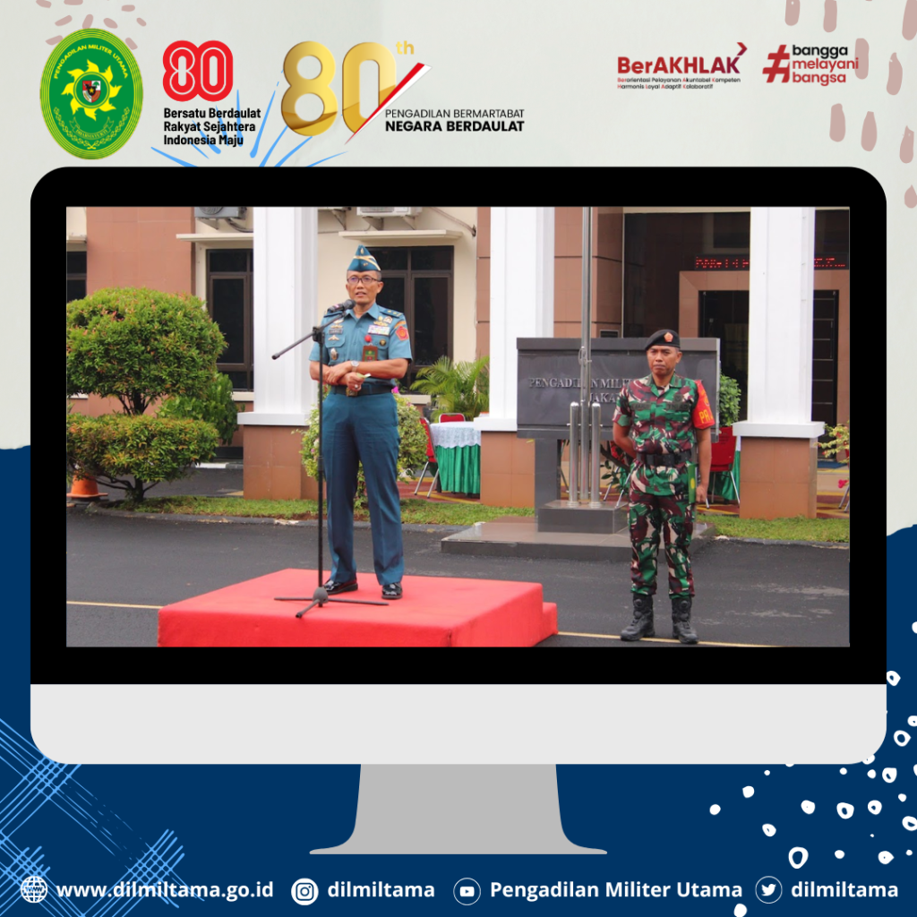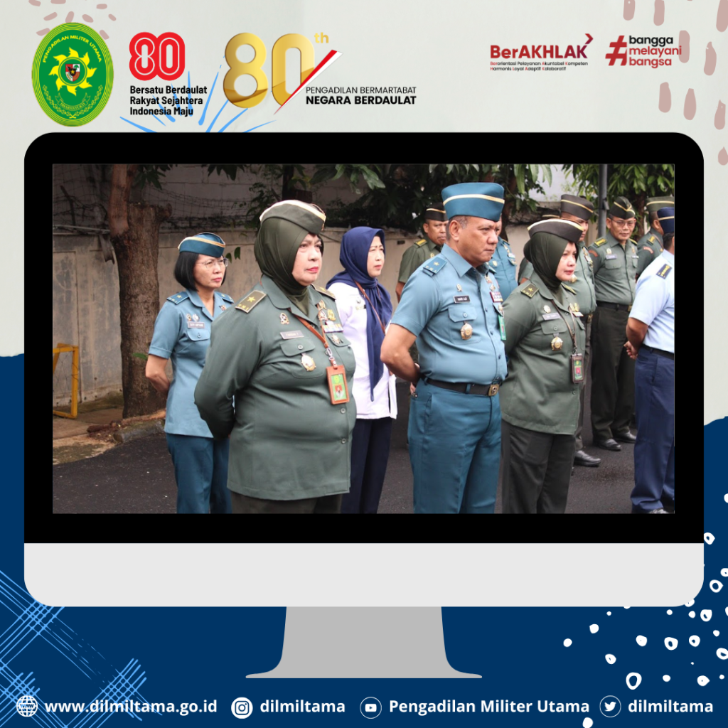Kepala Pengadilan Militer Utama Laksamana Muda TNI Ismu Edy Aryanto, S.H., M.H. memimpin Kegiatan Apel Gabungan di Lingkungan Peradilan Militer se-Jakarta yang diikuti oleh seluruh personel Dilmiltama, Dilmilti II Jakarta dan Dilmil II-08 Jakarta.