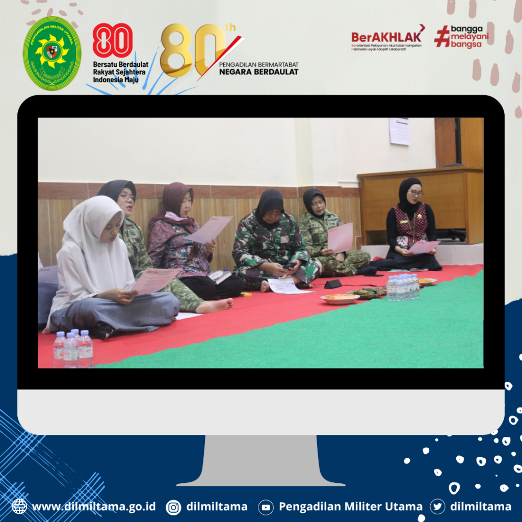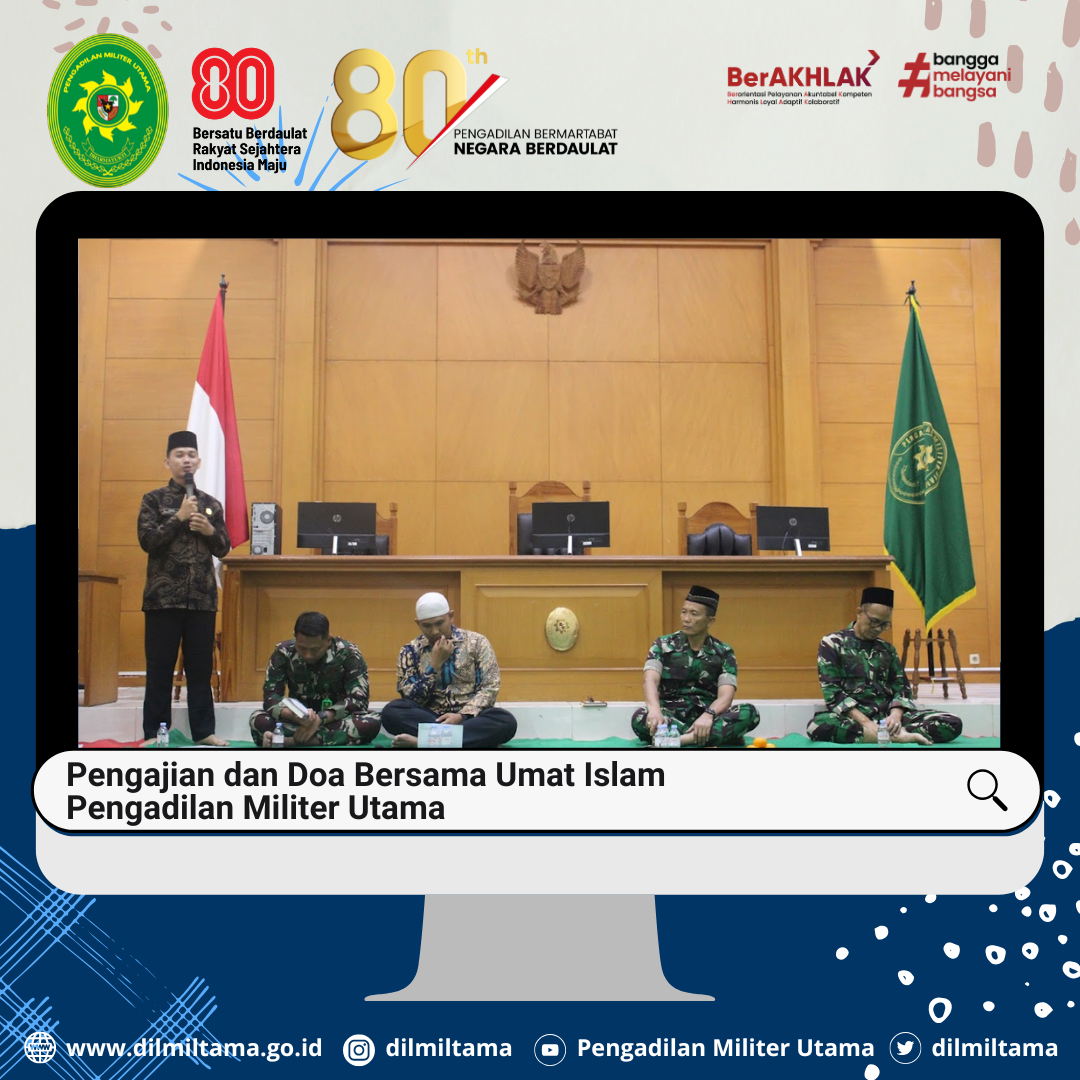 Pengadilan Militer Utama menyelenggarakan Kegiatan Pengajian, Pembacaan Surat Yasin dan Doa Istighosah. Kegiatan tersebut merupakan salah satu bentuk pembinaan yang diberikan kepada personel Pengadilan Pengadilan Militer utama agar selalu bertaqwa kepada Tuhan Yang Maha Esa.