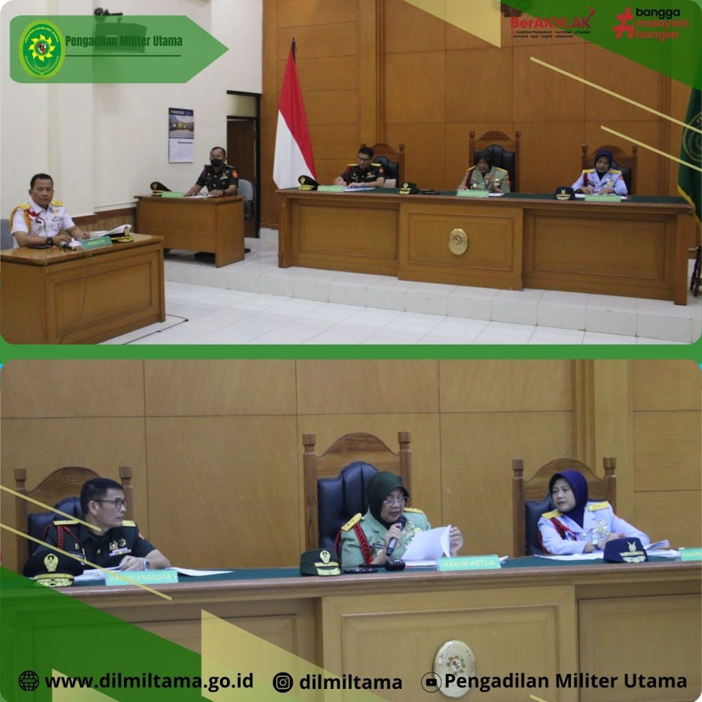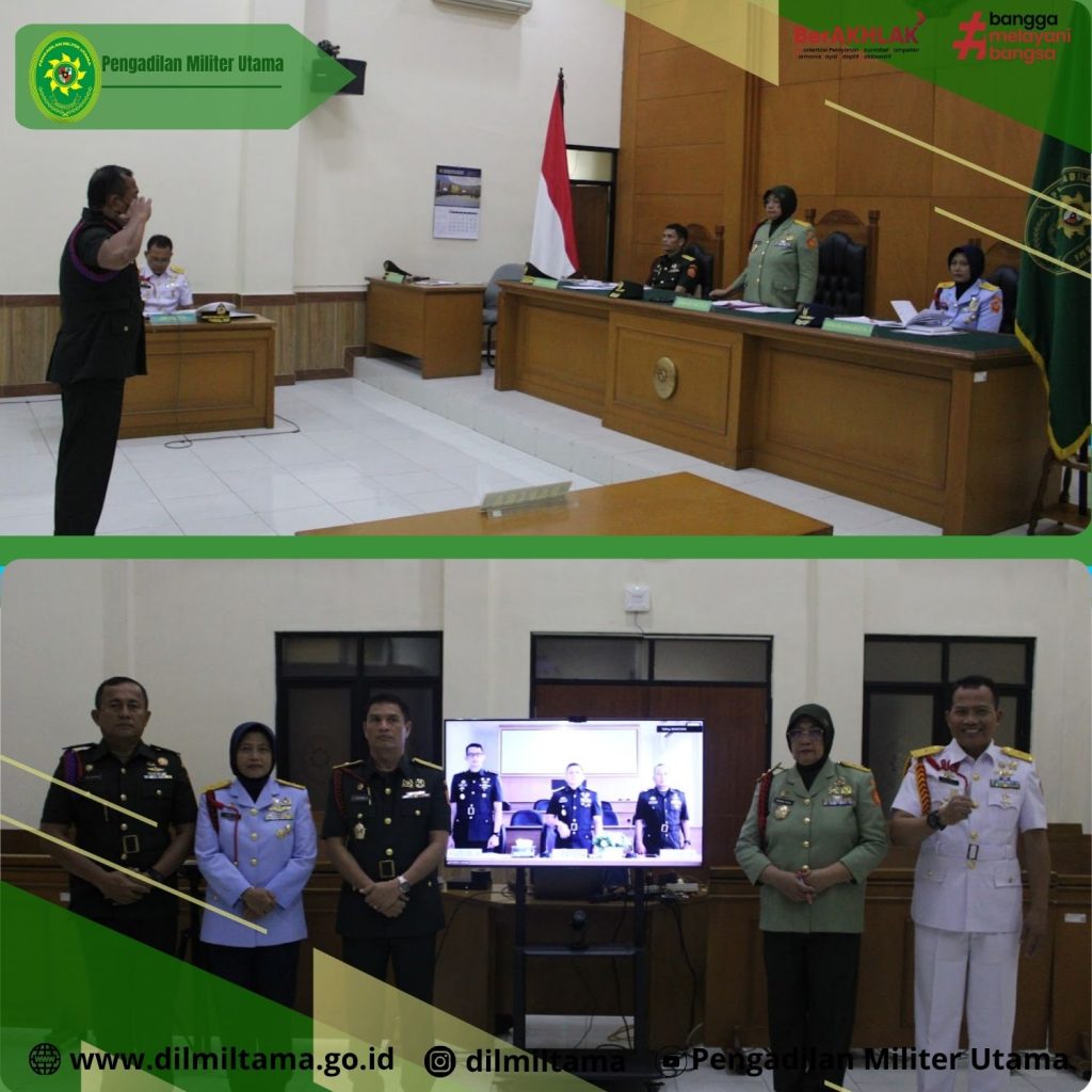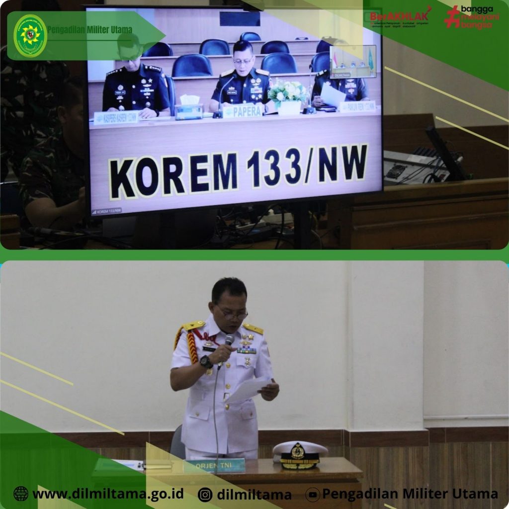 Persidangan dipimpin oleh Mayor Jenderal TNI Faridah Faisal, S.H., M.H. selaku Ketua Majelis, serta Brigadir Jenderal TNI Dr. Esron Sinambela, S.S., S.H., M.H. dan Marsekal Pertama TNI Evi Zuraida, S.H., M.H. masing-masing sebagai Hakim Anggota dan dihadiri oleh Wakil Oditur Jenderal TNI Laksamana Pertama TNI Dr. Marimin, S.H., M.M., M.H. serta Komandan Korem 133/Nani Wartabone Brigadir Jenderal TNI Hardo Sihotang yang hadir secara daring melalui saluran zoom meeting. Seluruh rangkaian persidangan berlangsung tertib, aman, dan lancar, dengan tetap menjunjung tinggi prinsip independensi peradilan, transparansi, dan akuntabilitas.